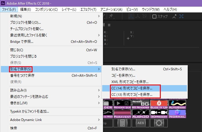 AfterEffectsの下位バージョンの保存について